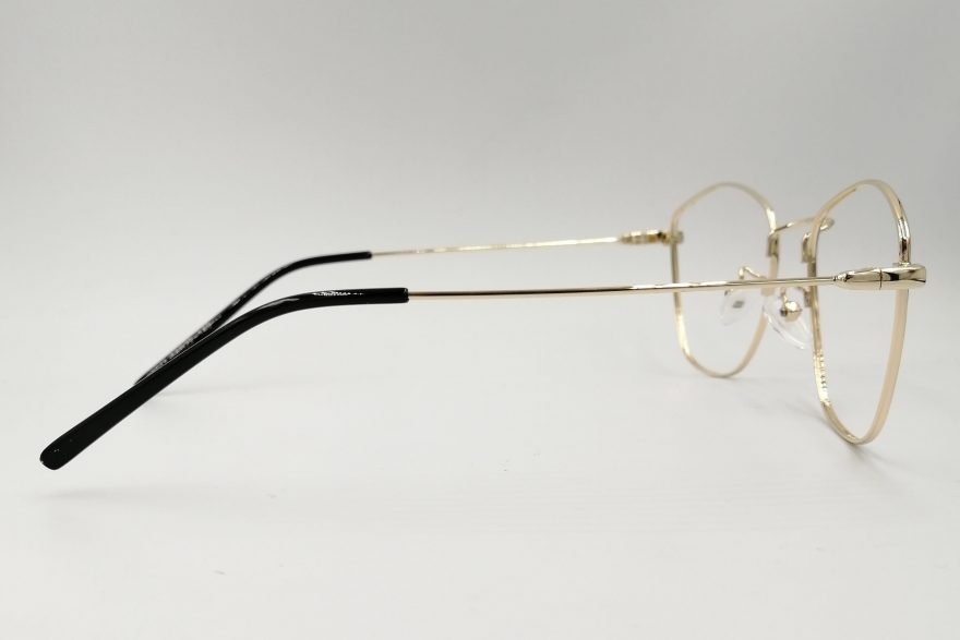Montura estilo agatada, fabricada en material metálico, color gris y dorado, con un marco completo talla M, con un peso aproximado de 12 g, incluye cofre para guardarlas.
