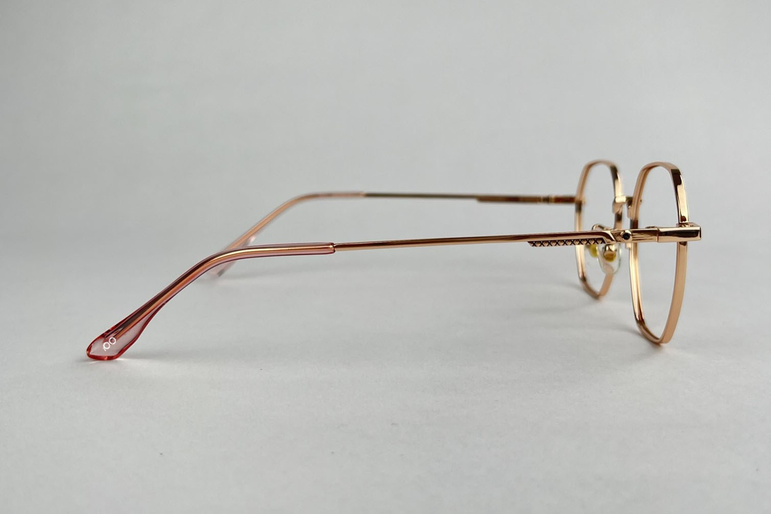 Montura estilo Geométrico, fabricada en material metálico, color dorado, con un marco completo talla S, con un peso aproximado de 12 g. 3 meses de garantía por imperfectos de fábrica, incluye cofre para guardarlas.