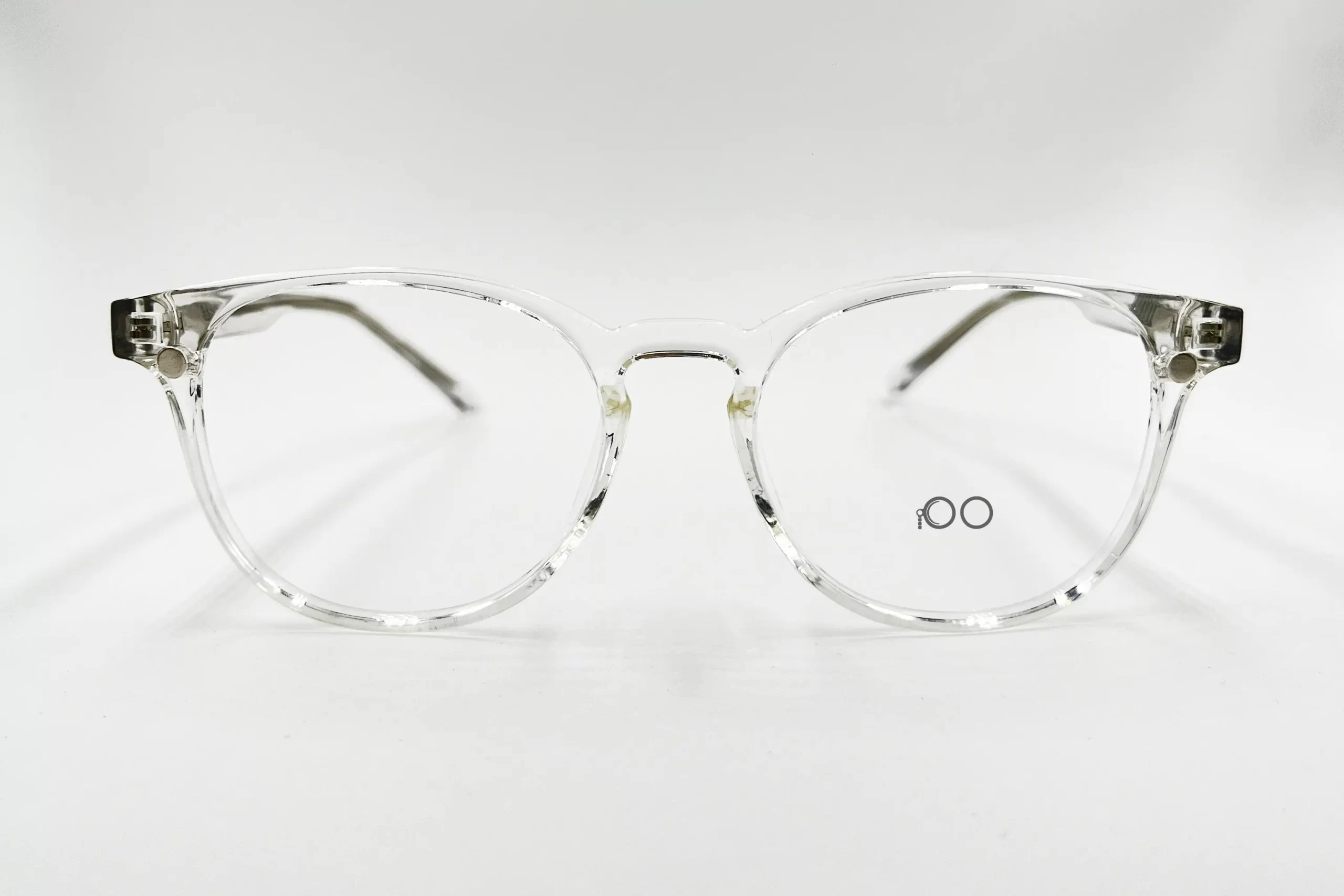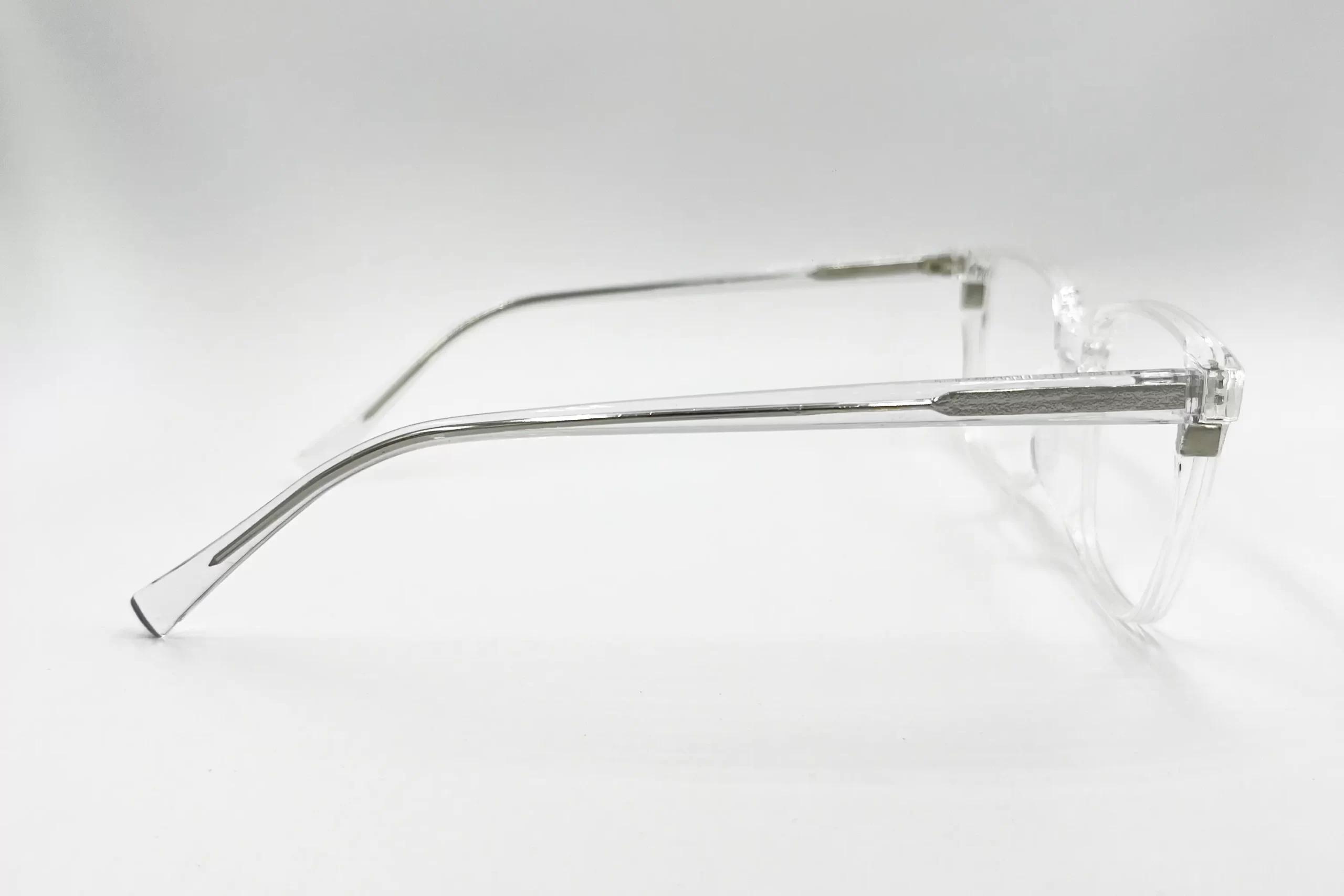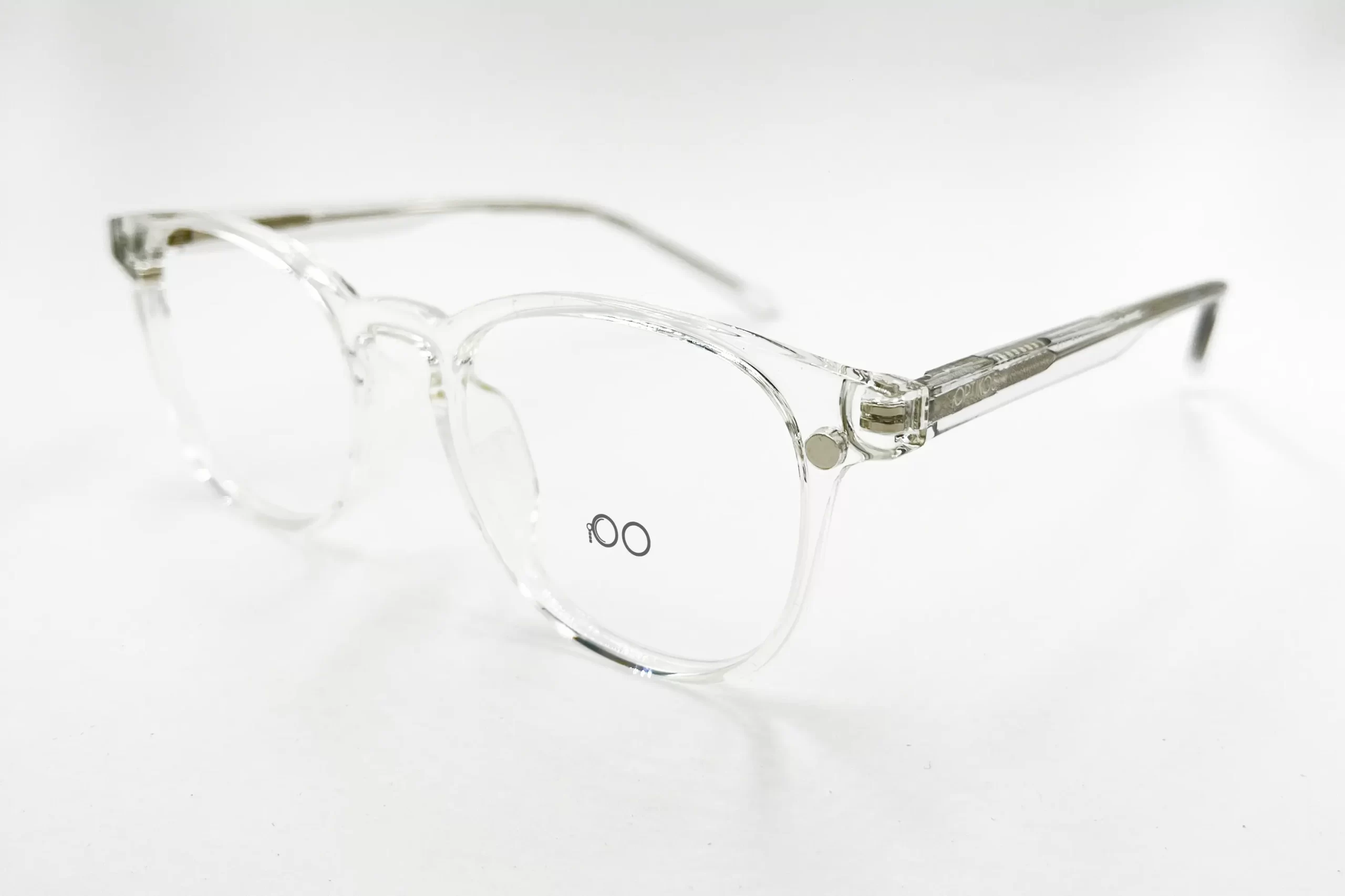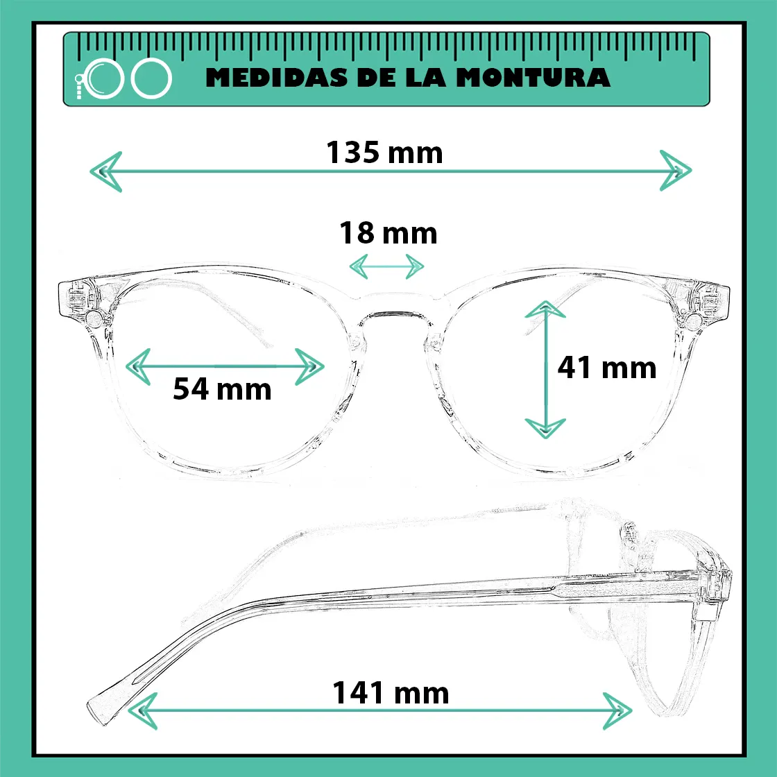 Montura estilo cuadrada con lente sobrepuesto, fabricada en material tr 90, color transparente, con un marco completo talla m, con un peso aproximado de 14 g, incluye cofre para guardarlas.