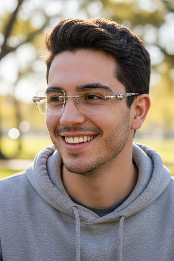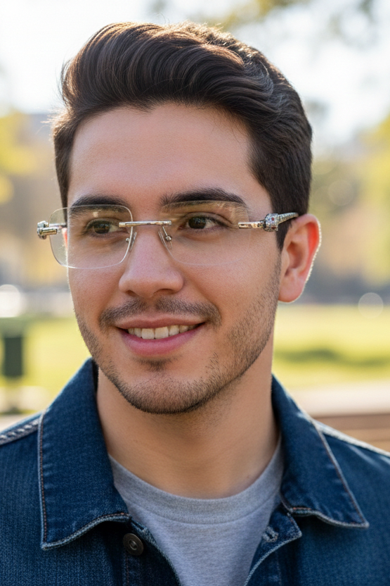 Montura estilo cuadrado, fabricada en material metálico, color Plateado, con un marco completo talla M, con un peso aproximado de 24g. 3 meses de garantía por imperfectos de fábrica, incluye cofre para guardarlas.