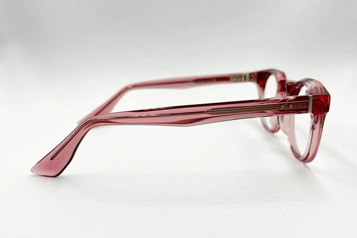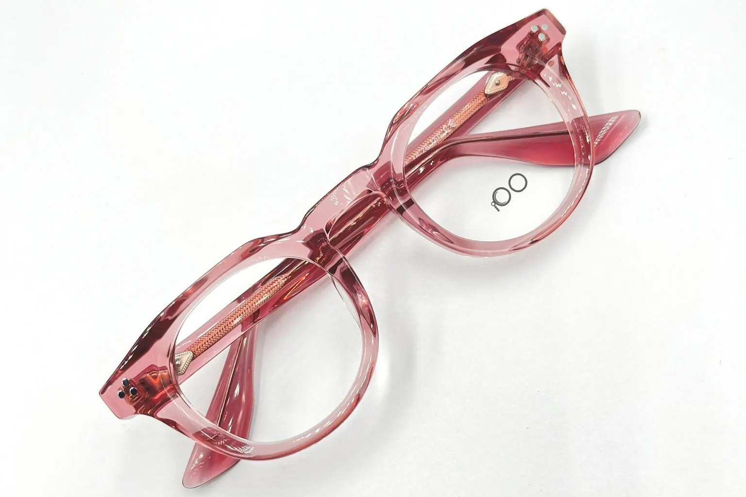 Montura estilo redonda, fabricada en material acetato, color rosado, con un marco completo talla S, con un peso aproximado de 22 g incluye cofre para guardarlas.
