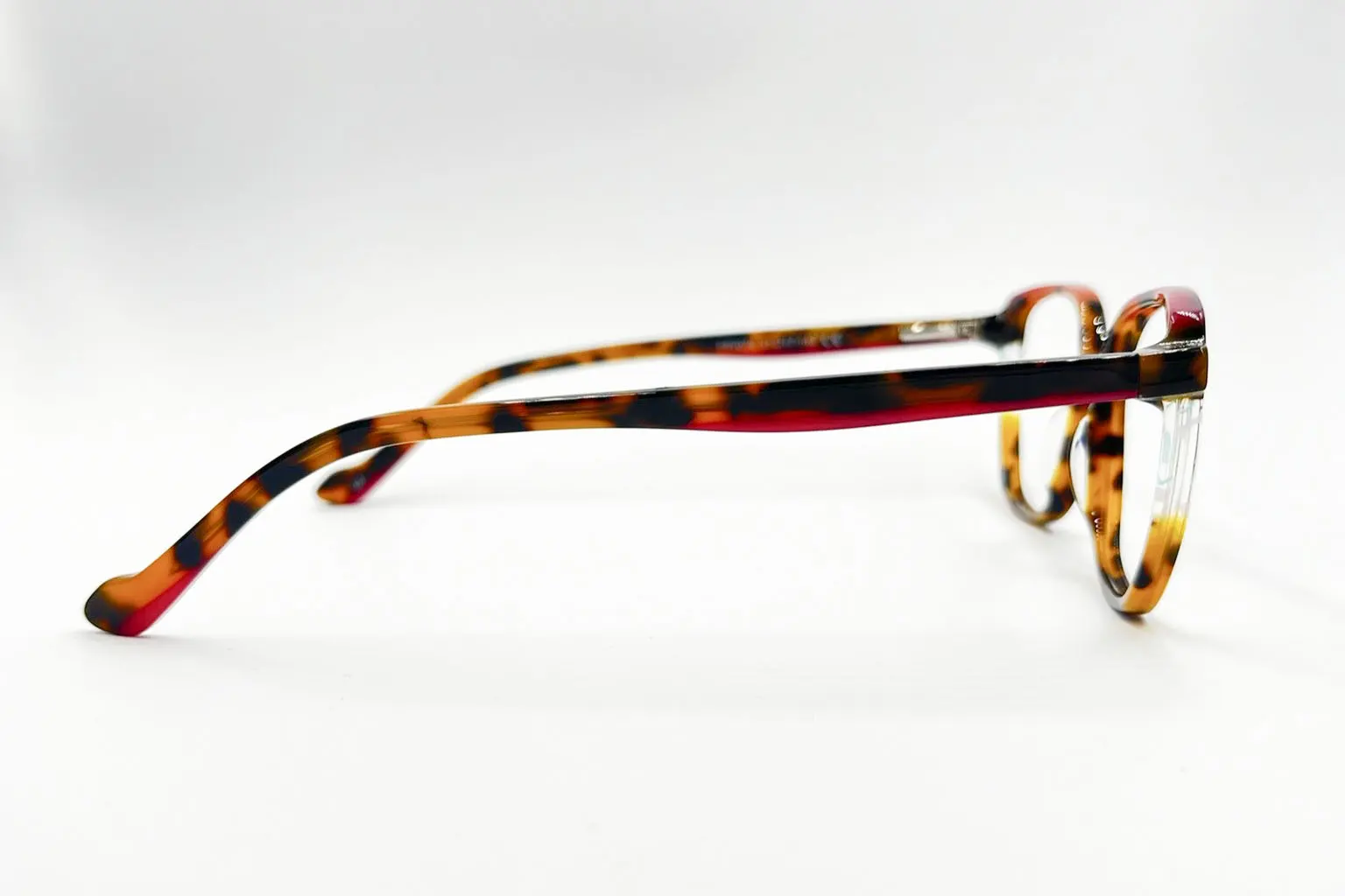 Montura estilo geometrico, fabricada en material acetato, color tortoise, con un marco completo talla s, con un peso aproximado de 22 g incluye cofre para guardarlas.