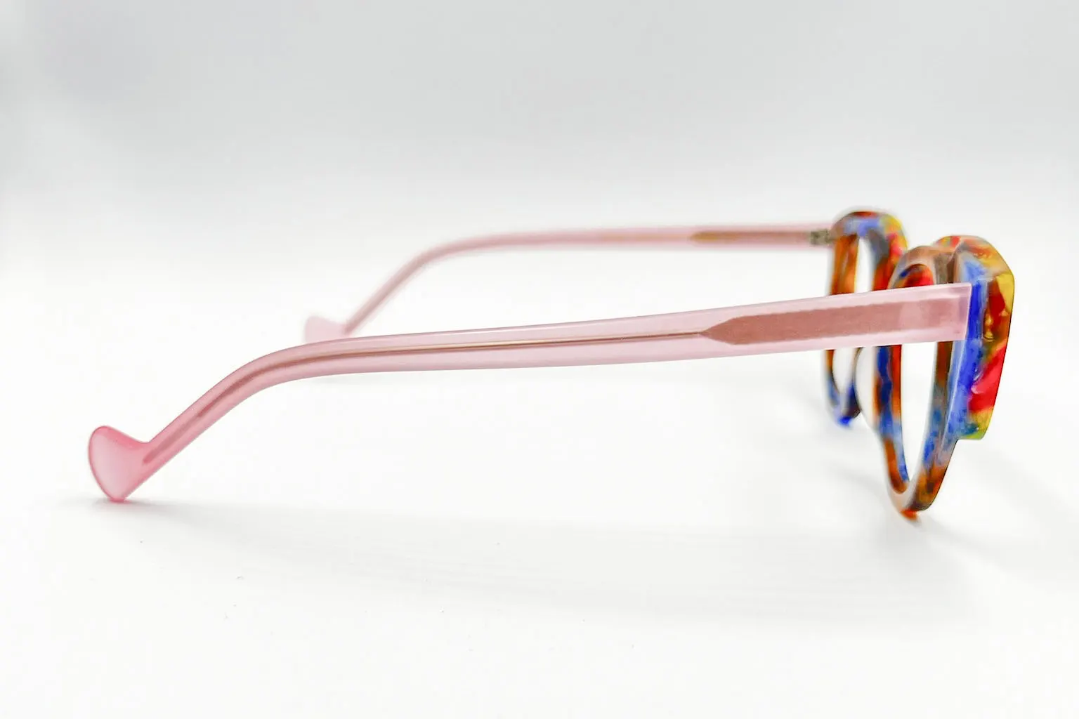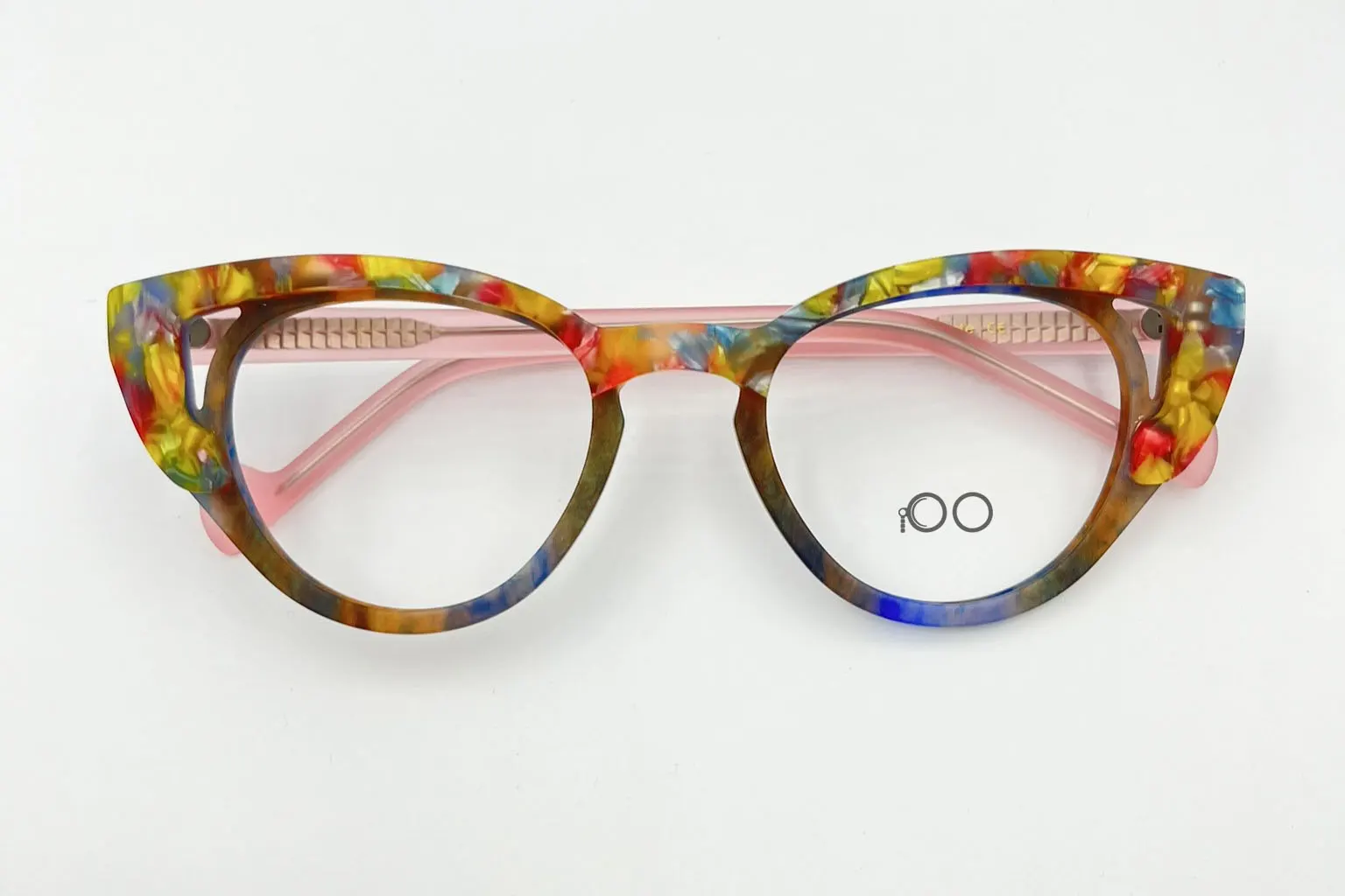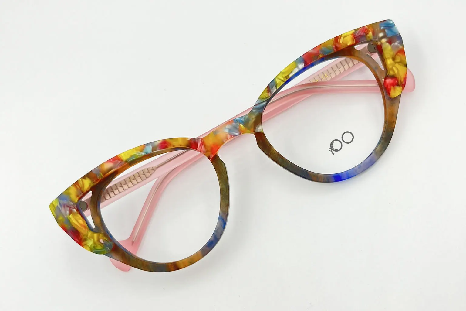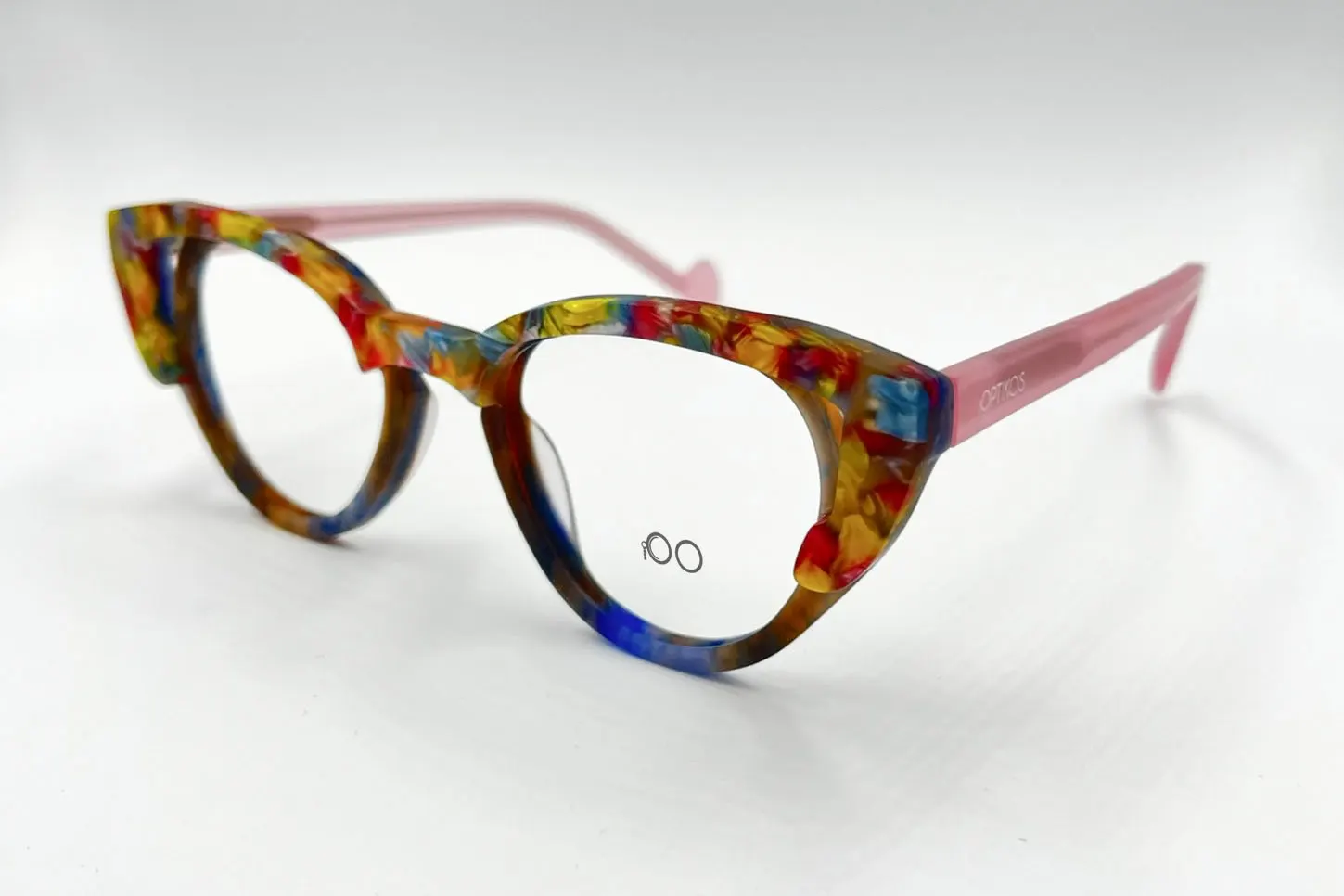 Montura estilo agatada, fabricada en material acetato, colores (flores), con un marco completo talla s, con un peso aproximado de 22 g incluye cofre para guardarlas.