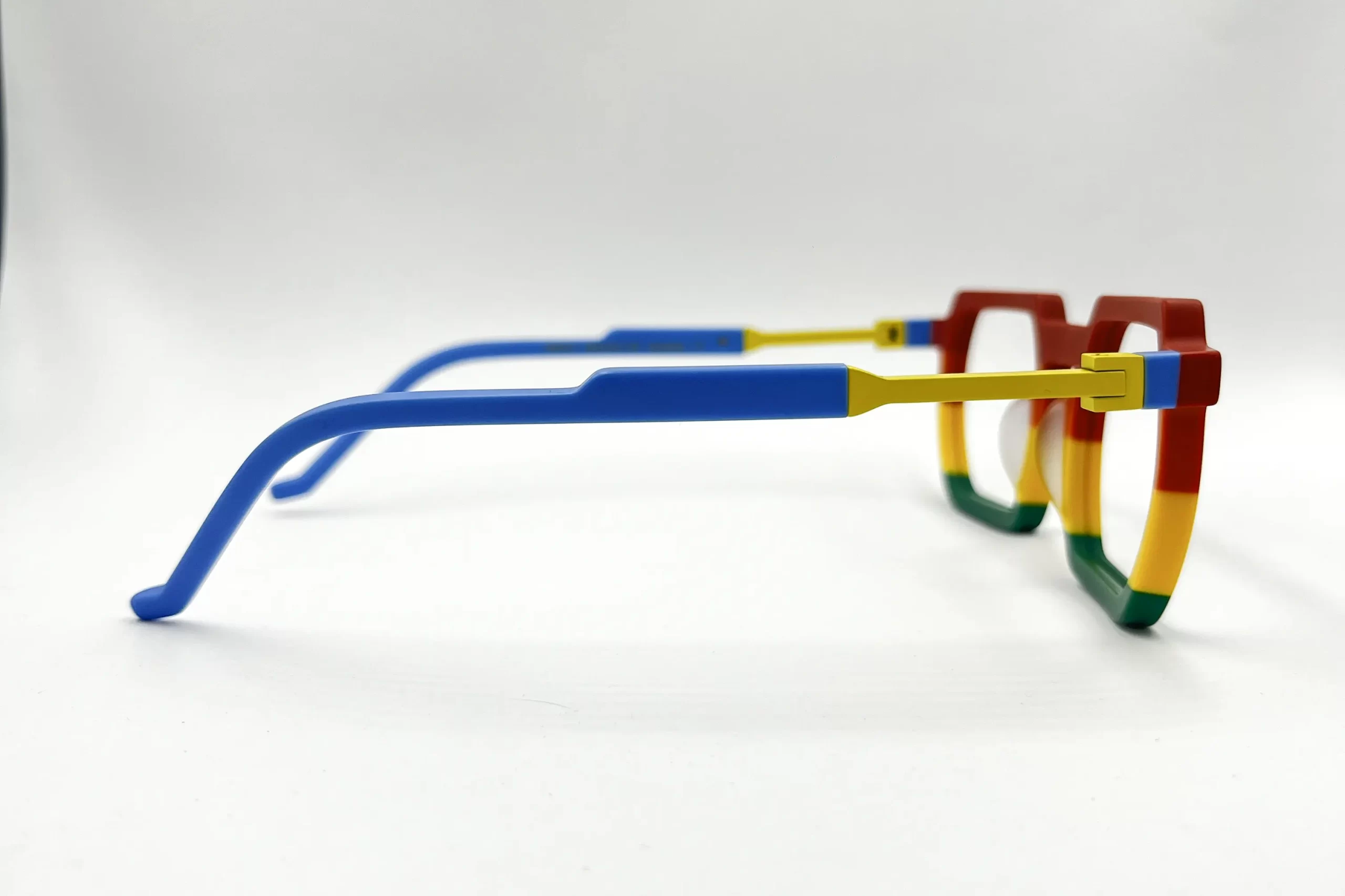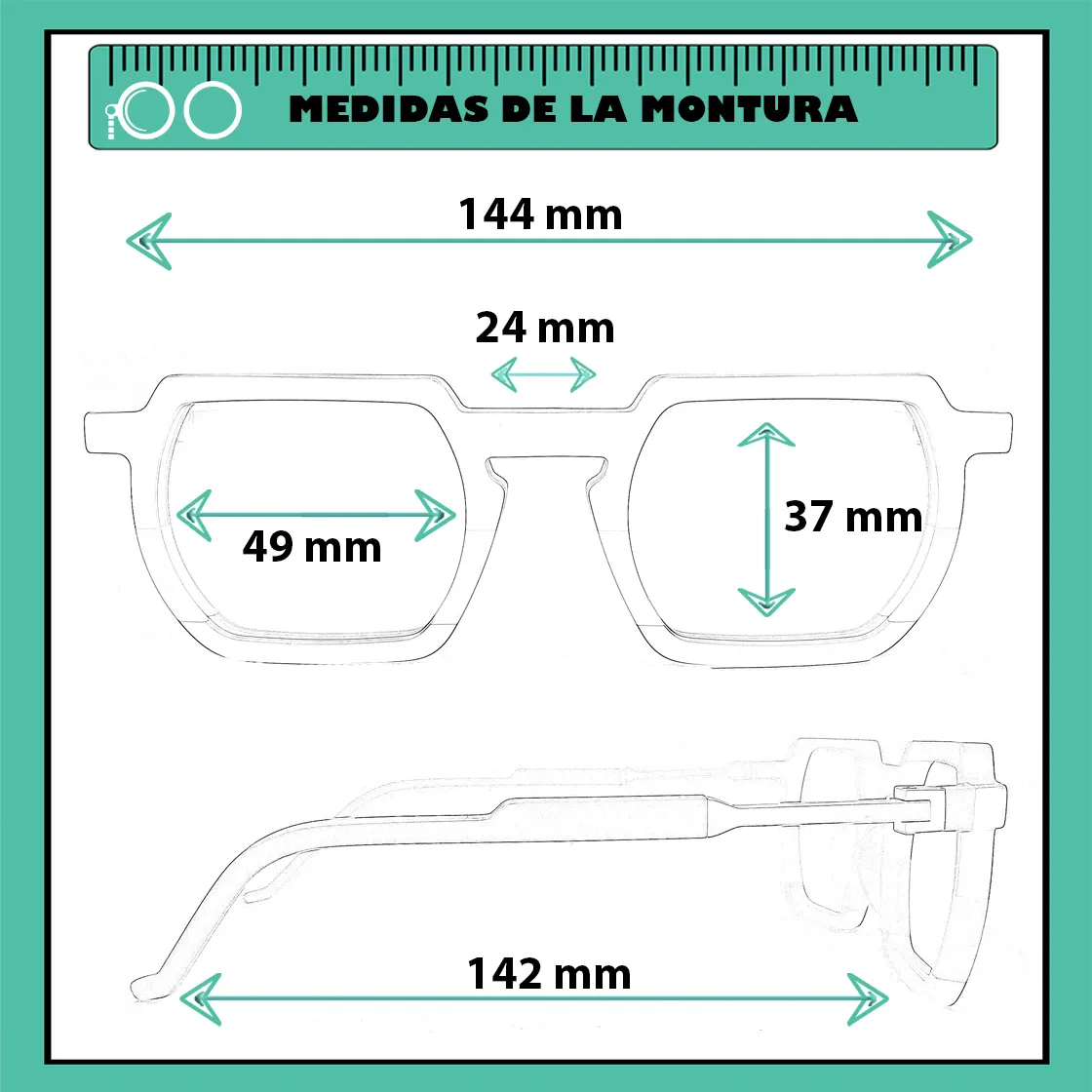 Montura estilo cuadrada, fabricada en material Acetato, multicolor, con un marco completo talla s, con un peso aproximado de 31 g, incluye cofre para guardarlas.