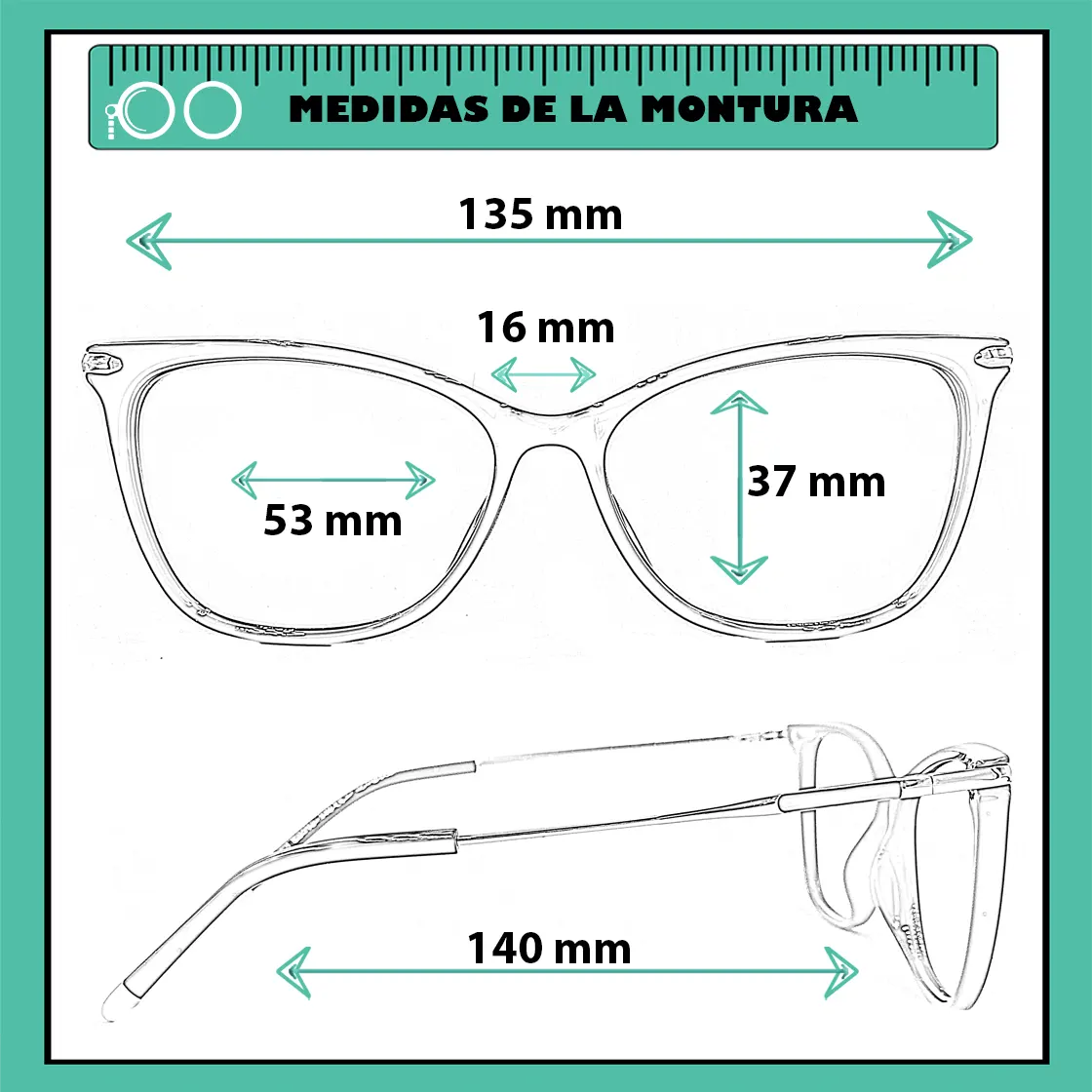 Montura estilo agatada, fabricada en material tr 90, color Negro, con un marco completo talla M, con un peso aproximado de 15 g, incluye cofre para guardarlas.