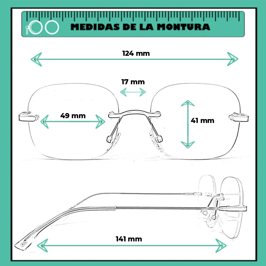 Montura estilo cuadrado, fabricada en material metálico, color negro, con un marco completo talla M, con un peso aproximado de 24g. 3 meses de garantía por imperfectos de fábrica, incluye cofre para guardarlas.