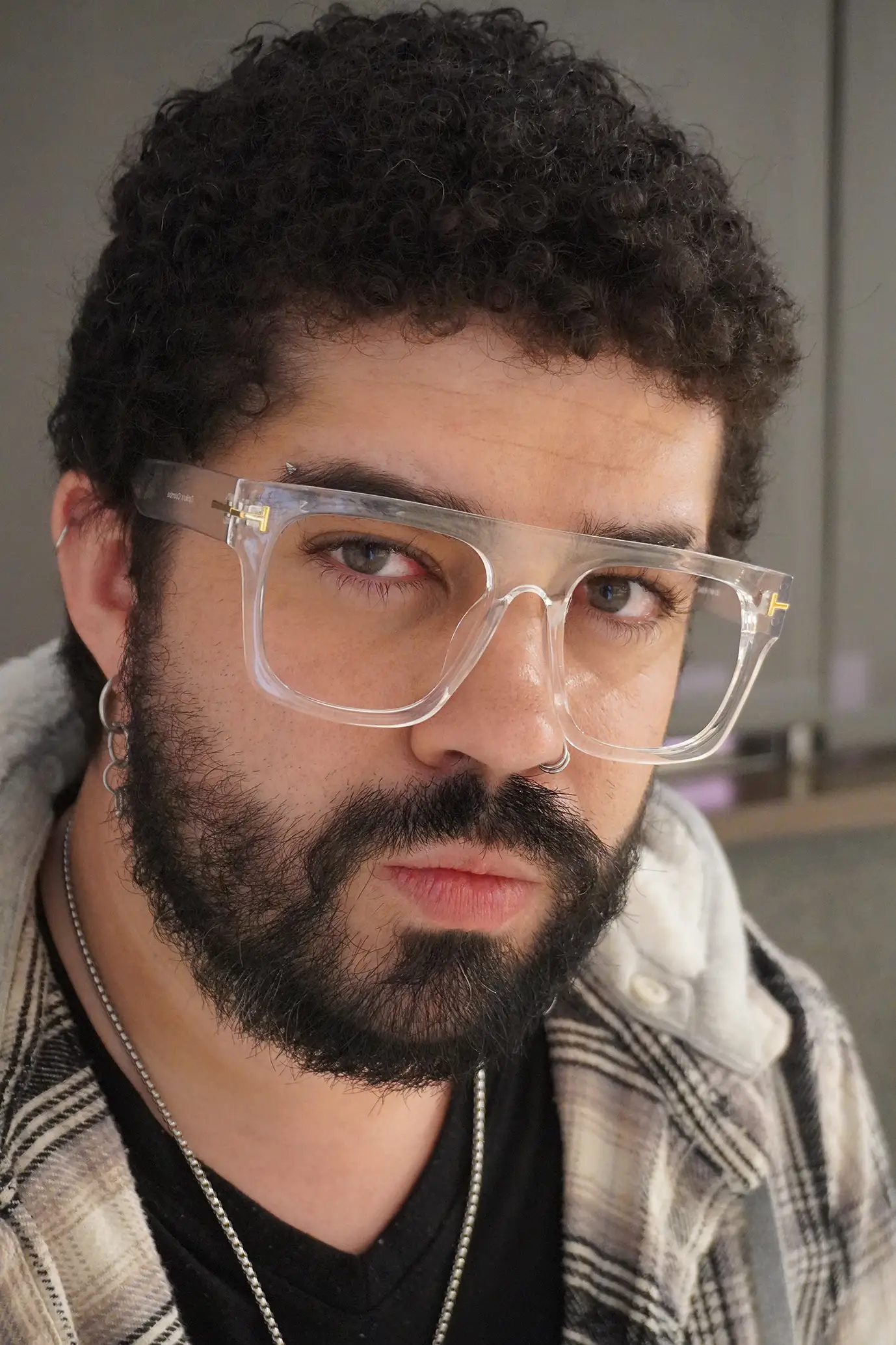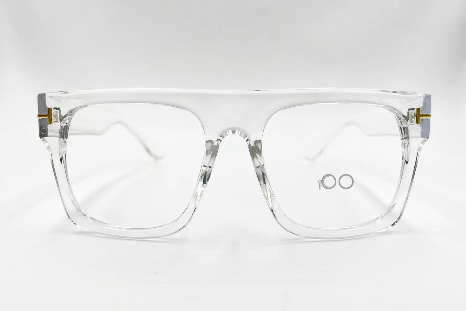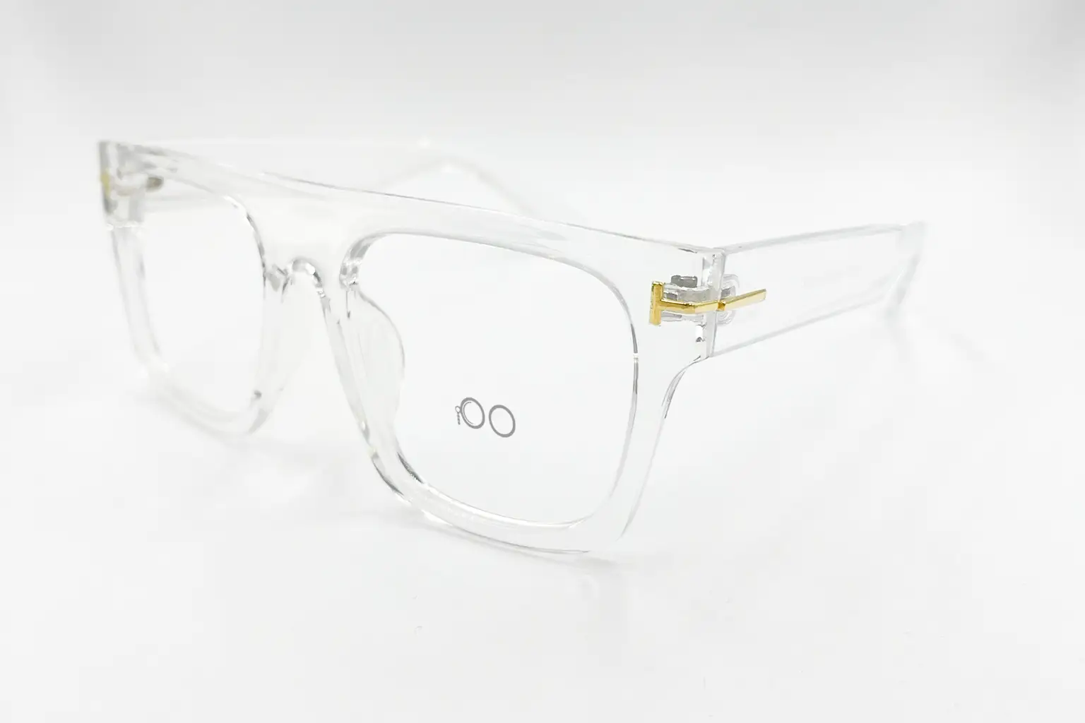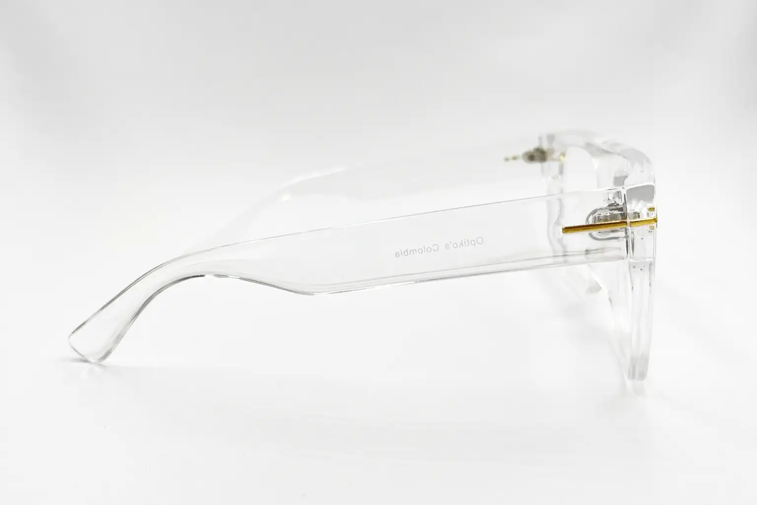 Montura estilo cuadrada, fabricada en material Acetato, color transparente, con un marco completo talla M, con un peso aproximado de 31 g, incluye cofre para guardarlas.