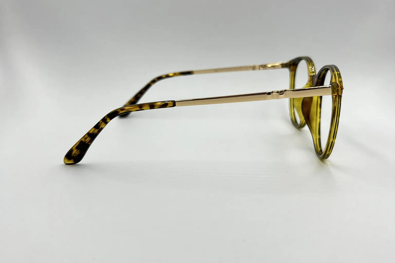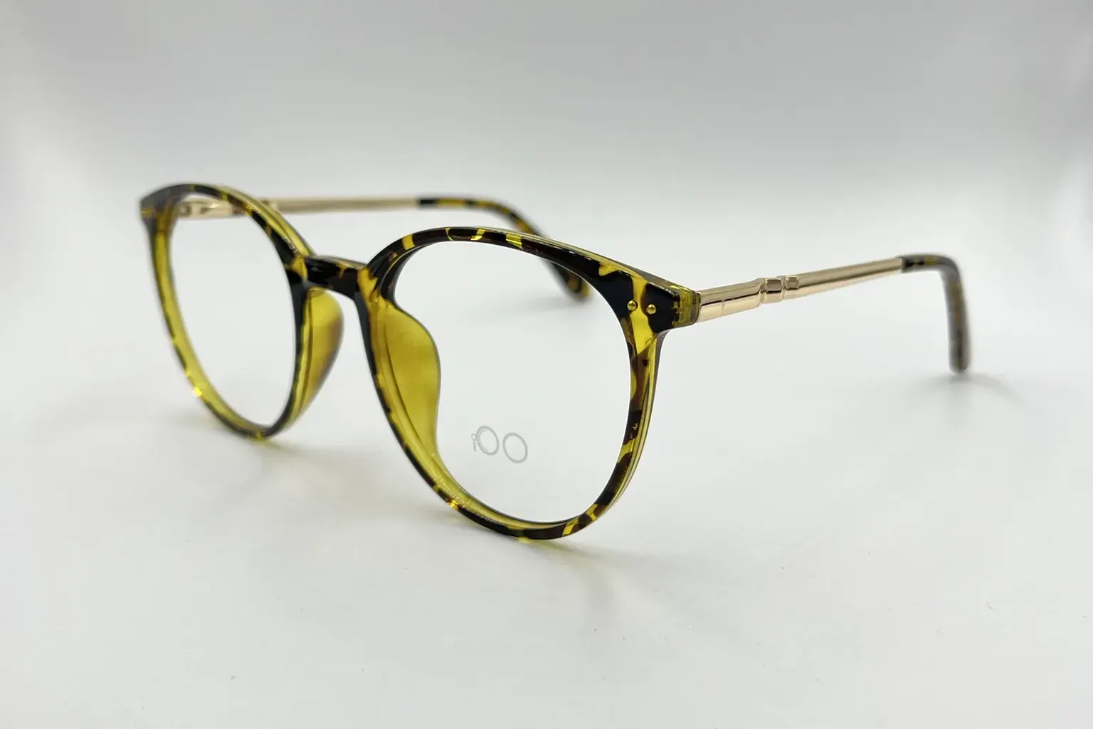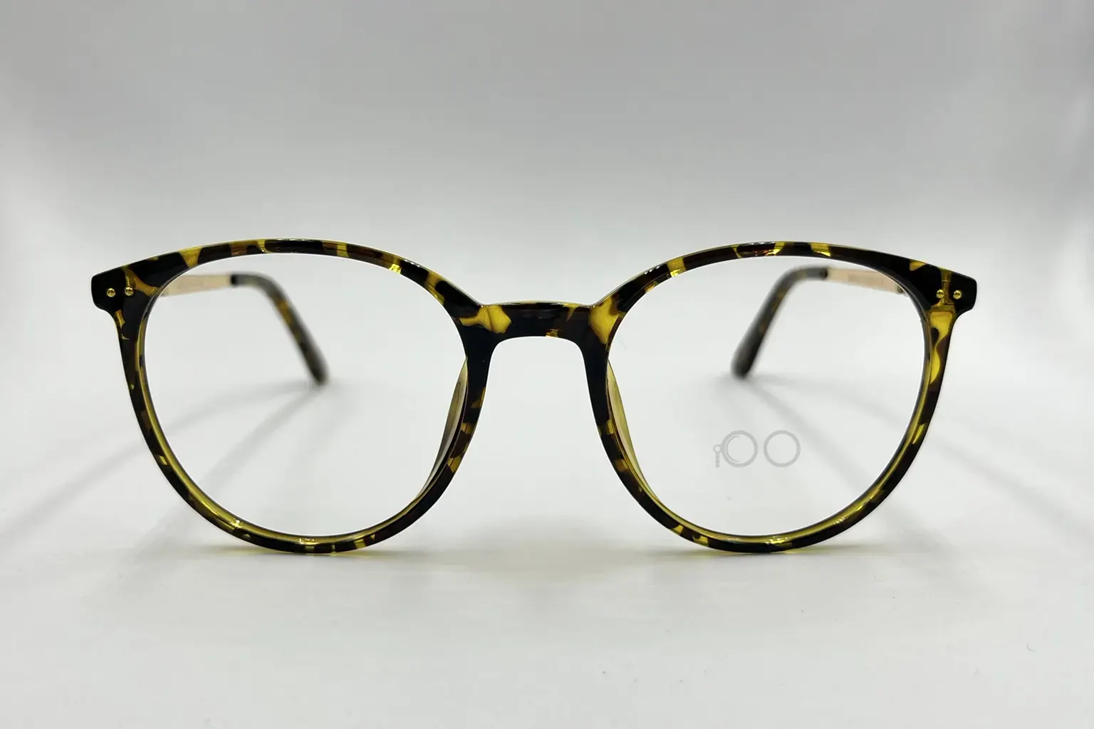 Montura estilo redonda, fabricada en material tr 90, color tortoise, con un marco completo talla M, con un peso aproximado de 15 g, incluye cofre para guardarlas.