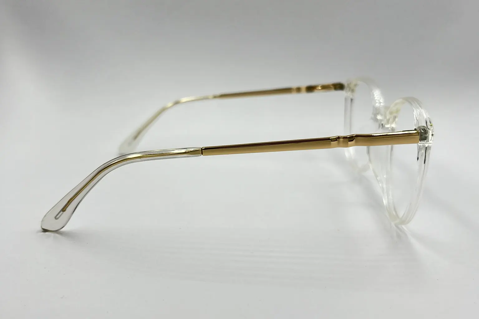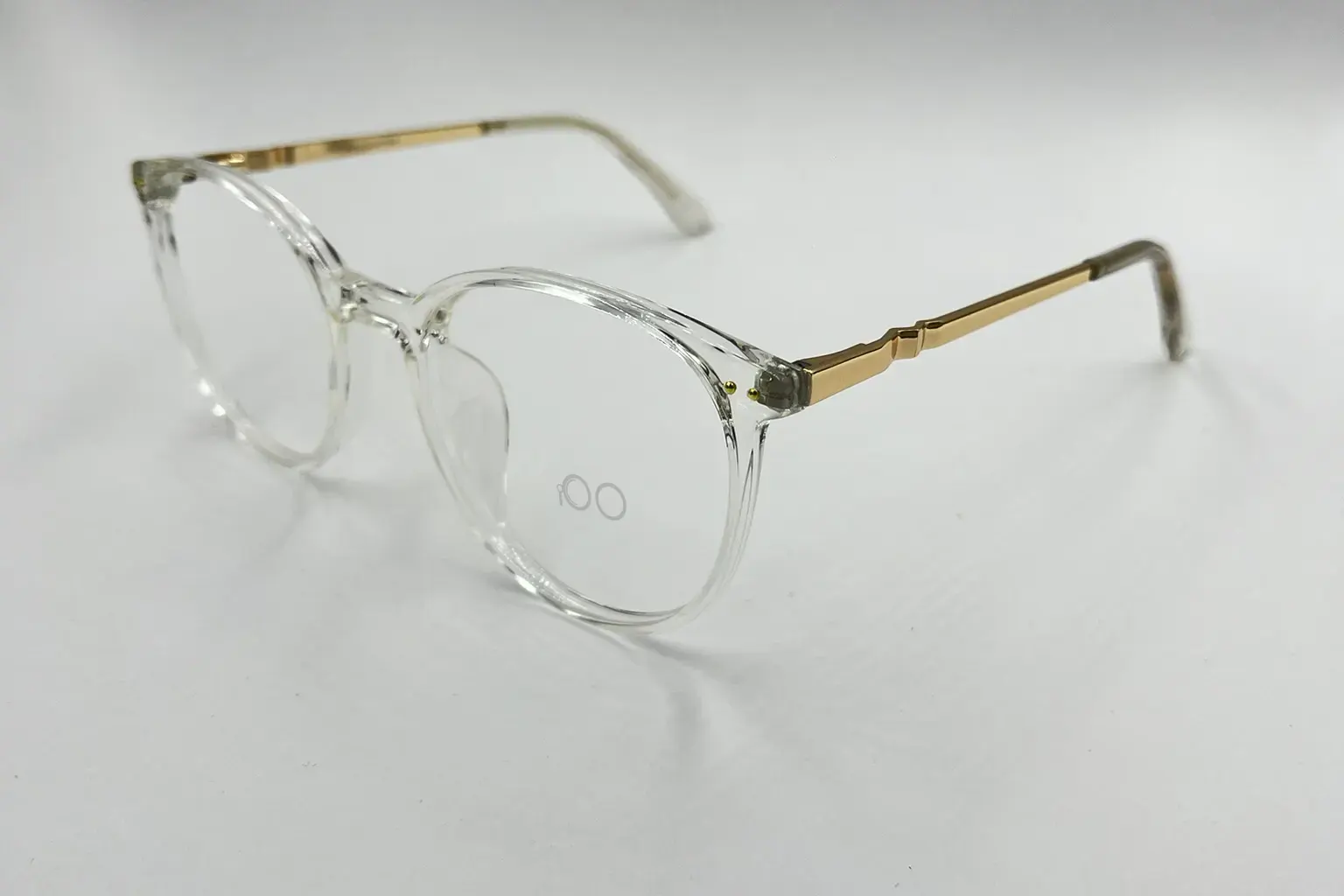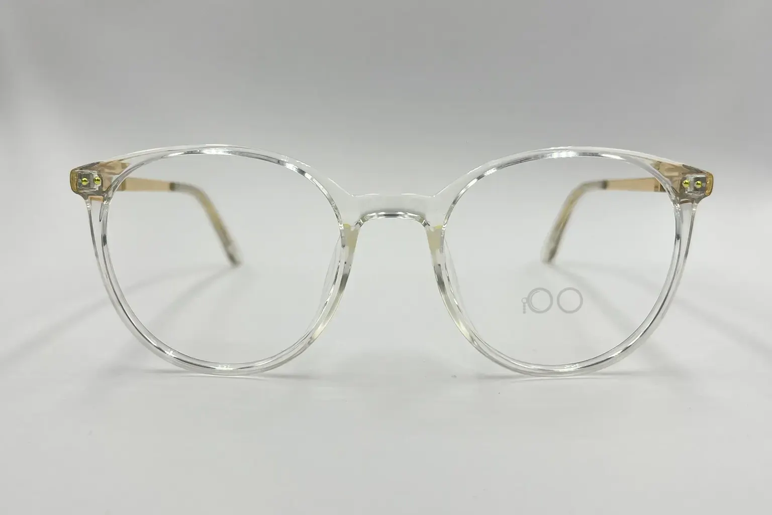 Montura estilo redonda, fabricada en material tr 90, color transparente, con un marco completo talla M, con un peso aproximado de 15 g, incluye cofre para guardarlas.